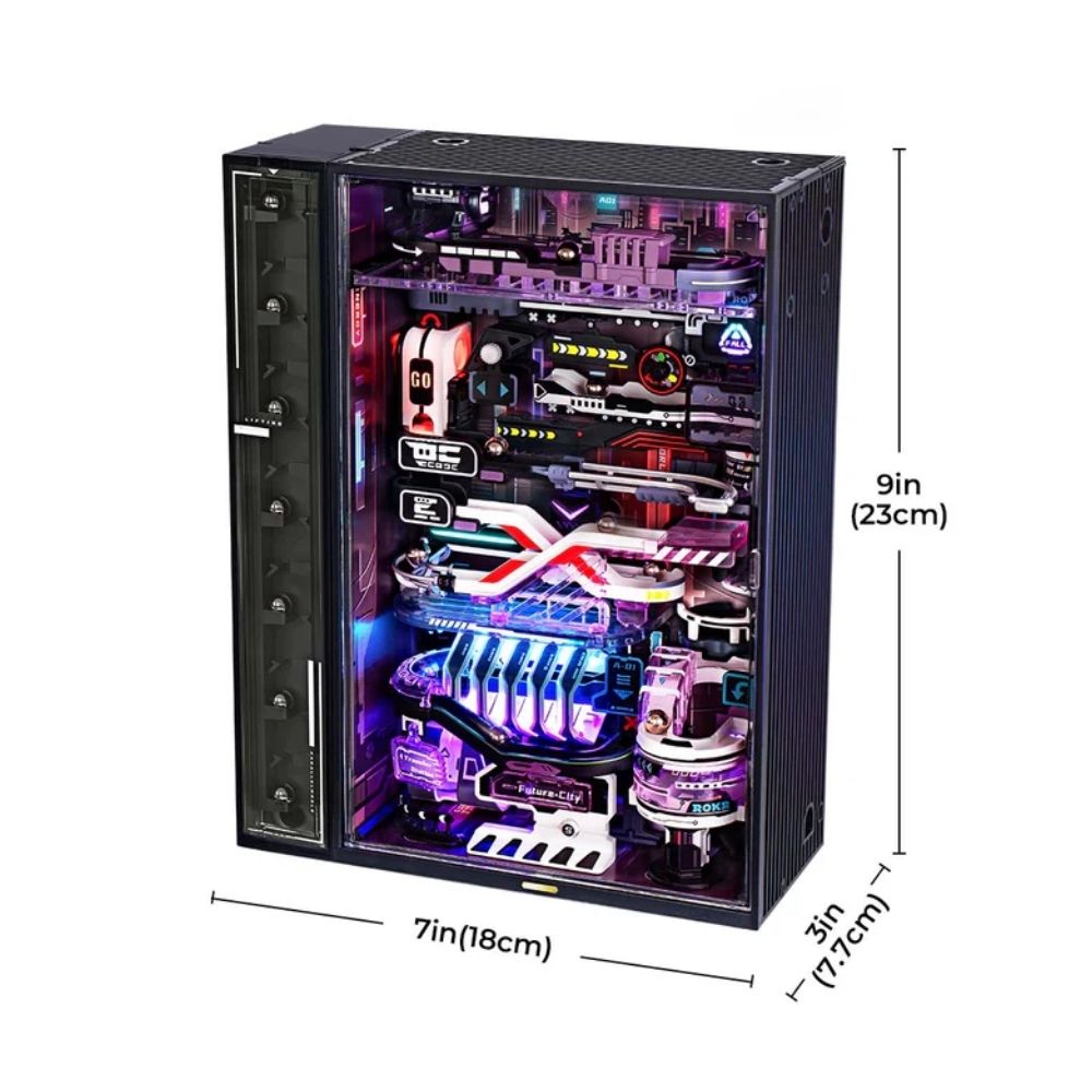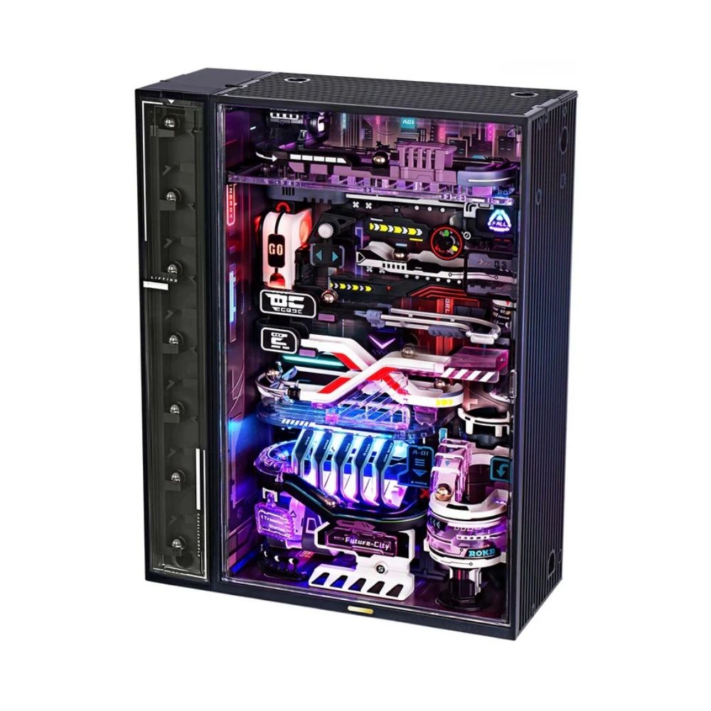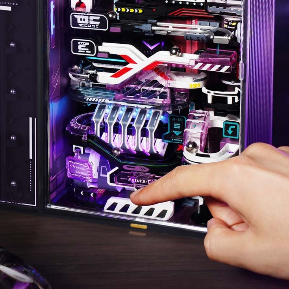 Immergiti nell'universo cyberpunk con questo modello di pista per biglie 3D, ispirato a una metropoli futuristica. Questo kit ti permette di ricreare una città dinamica dove le biglie viaggiano attraverso ascensori automatizzati, tunnel ed effetti di luce affascinanti. Il montaggio è reso facile grazie a un sistema di giunti a incastro, senza bisogno di colla. Questo modello è alimentato da una connessione USB per un'esperienza fluida e interattiva.