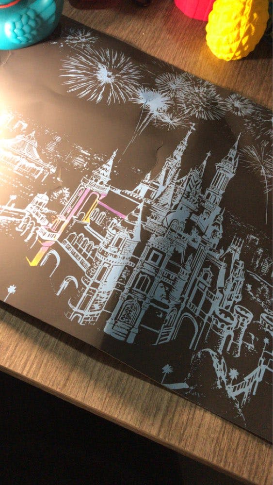 1 una tavola da scratch painting bianca per impratichire la propria tecnica di scratch painting
