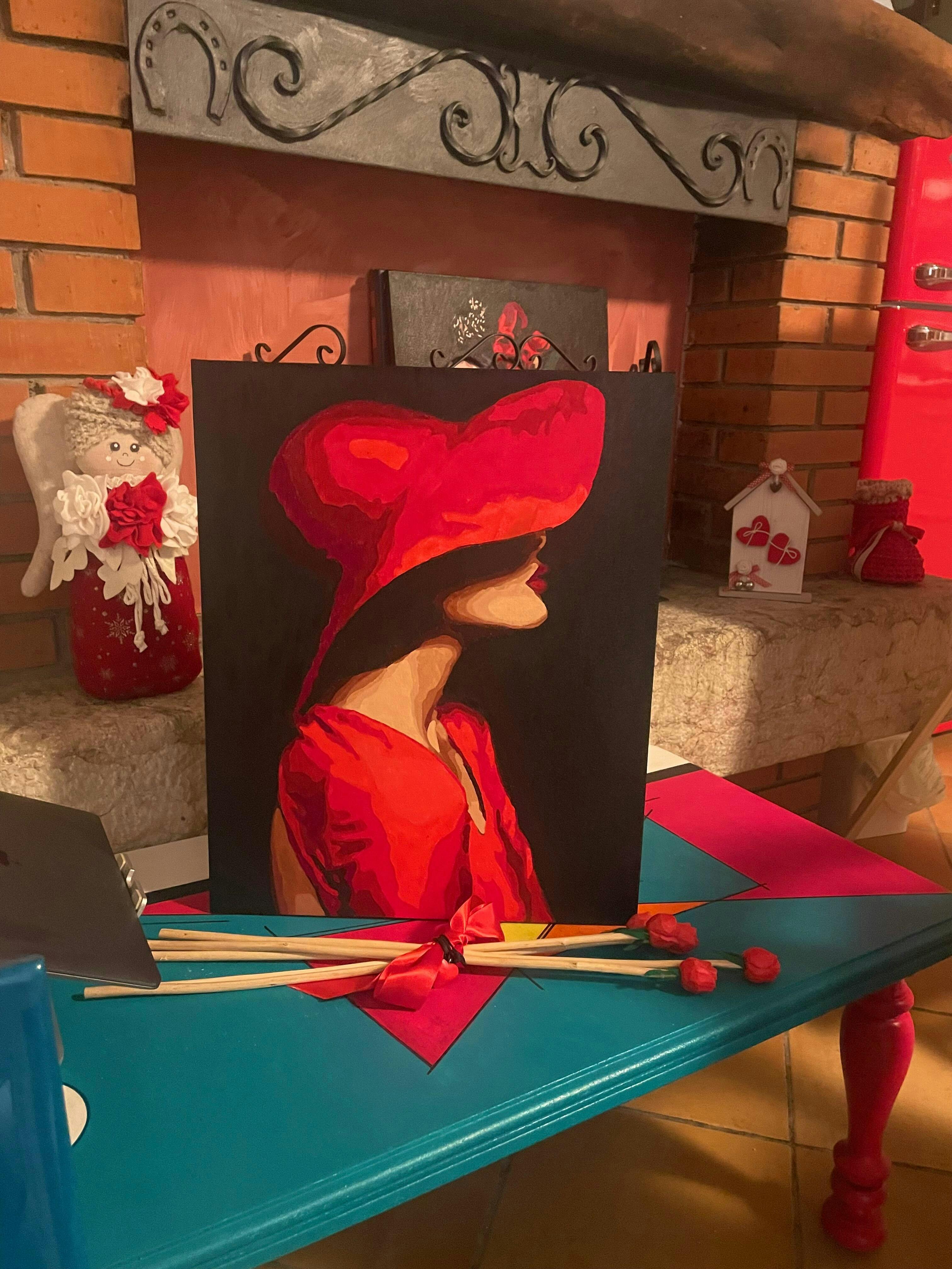 “Amo dipingere i volti di Donna e questo è uno dei soggetti più semplice che ho realizzato. Ma è davvero elegante, raffinata e bellissima” ….