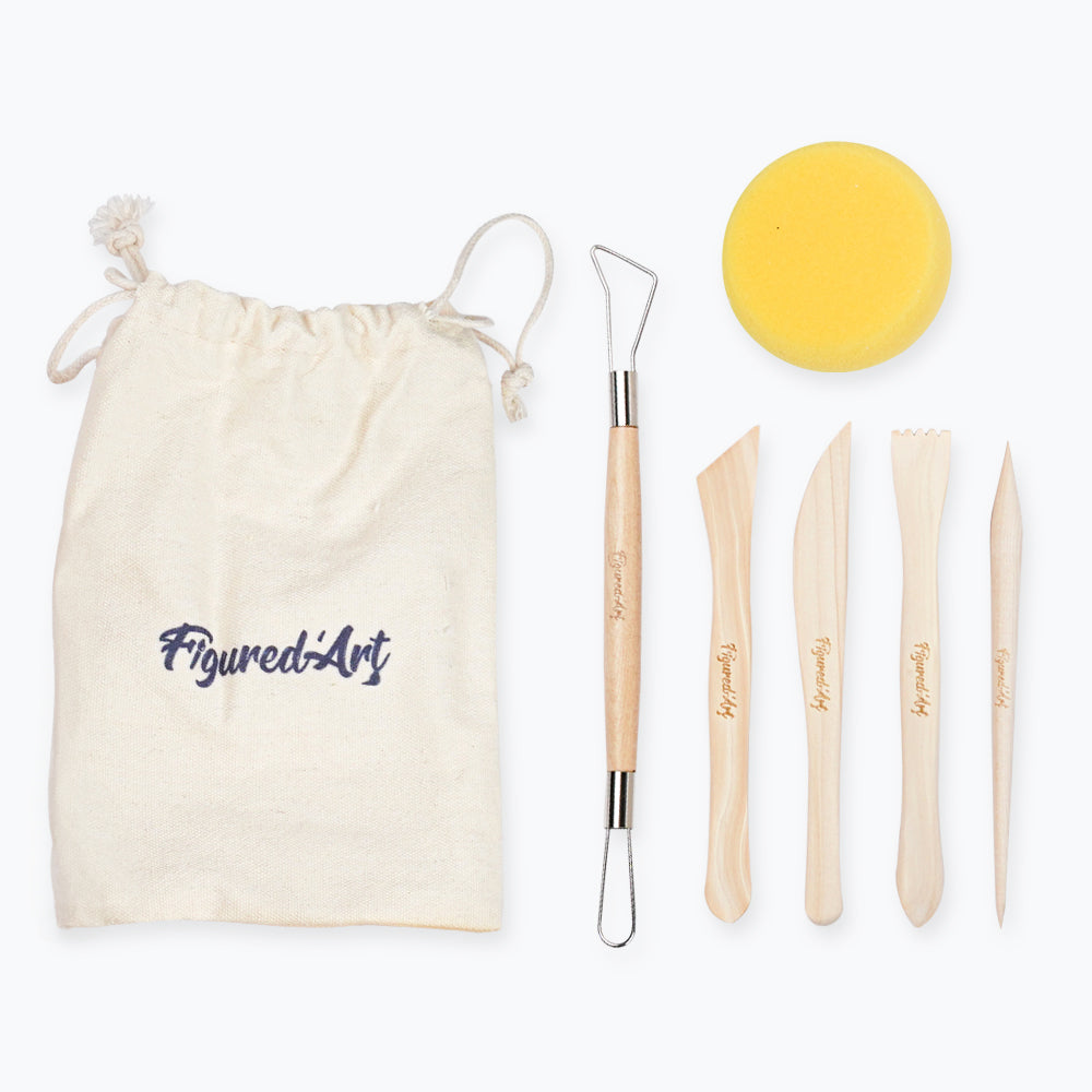 Se i tuoi attrezzi per modellare l'argilla autoindurente si sono rovinati non devi necessariamente riordinare tutto il kit. Qui puoi acquistare la bag contenente le stecche in legno, una miretta e la spugna. Tutto il necessario per modellare con precisione, levigare e rifinire i tuoi progetti.