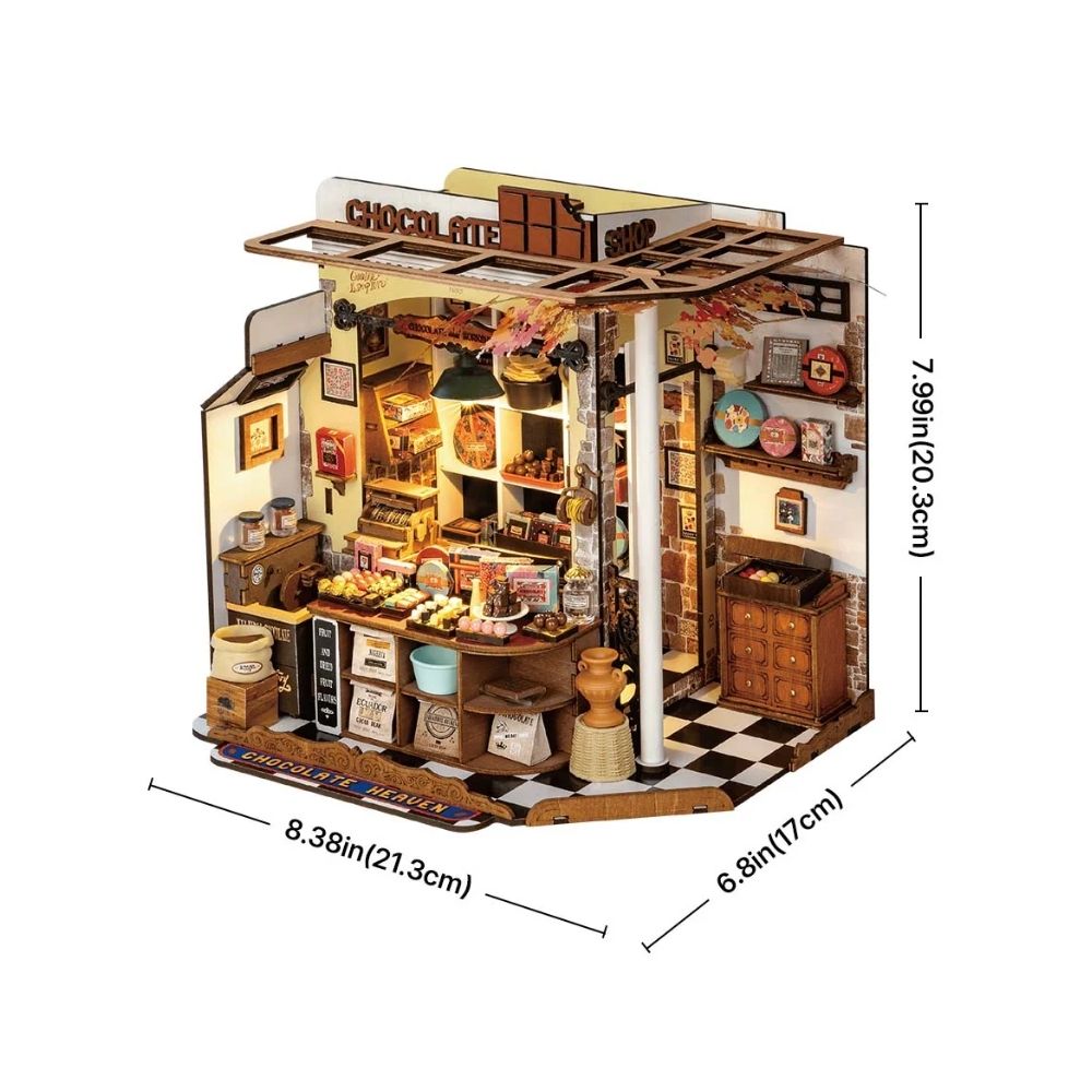 - Cioccolateria incantevole: Design in miniatura con mobili, scaffali e piccoli accessori di cioccolato.