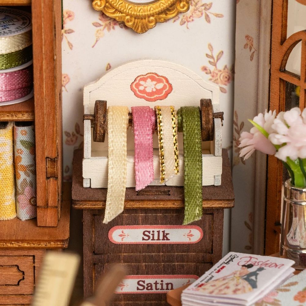 Entra nell'età d'oro dell'alta moda con la sartoria di Elsa, un affascinante atelier in miniatura dove creatività e moda prendono vita. Ispirato a un laboratorio di sartoria francese d'epoca, questo spazio ricco di fascino è pieno di dettagli eleganti, dai nastri di seta e i pizzi delicati ai rotoli di tessuto pronti a trasformarsi in abiti perfettamente confezionati. Una classica macchina da cucire a pedale è affiancata da un manichino che mostra un capo in lavorazione e da un tradizionale set da cucito con le iconiche forbici dorate. Il kit include anche luci LED integrate che illuminano la scena, valorizzando l'atmosfera calda e accogliente dell'atelier. Crea il tuo mondo di moda e artigianato e goditi un laboratorio in miniatura che prende vita, di giorno e di notte.