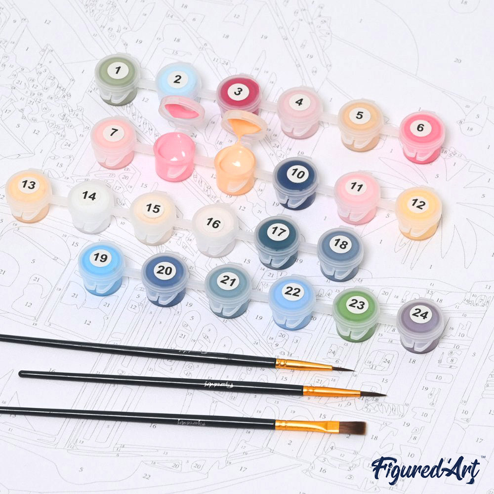 2) Riceverai un kit completo e pronto per l’uso con una tela divisa in zone cromatiche numerate, i flaconcini di colore numerati corrispondenti, pennelli per pittura ed una piccola immagine di anteprima per guidarvi verso il risultato finale. Che il viaggio abbia inizio!