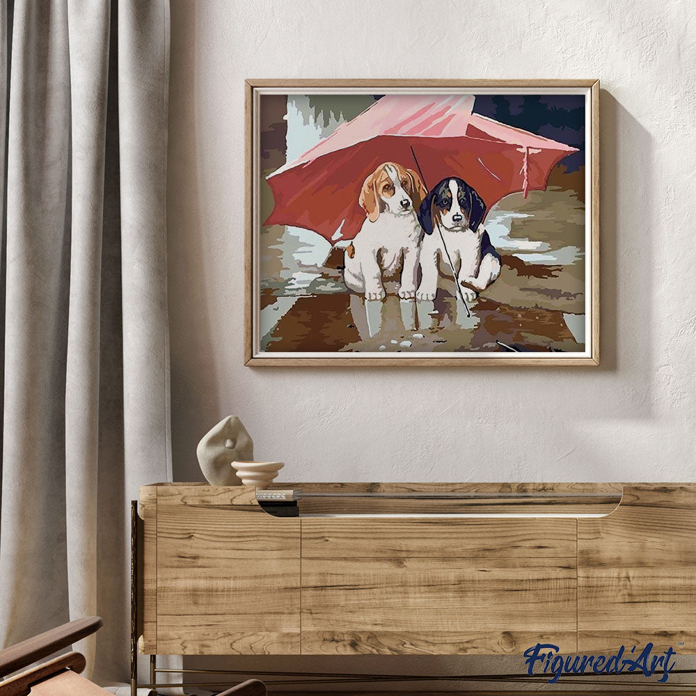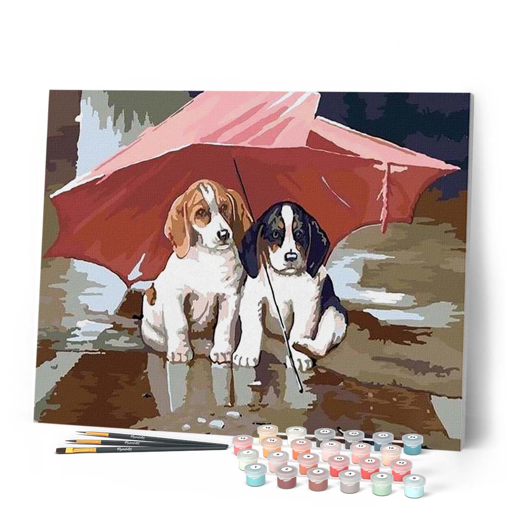 Modello: Due Cuccioli Sotto Un Ombrello Rosso