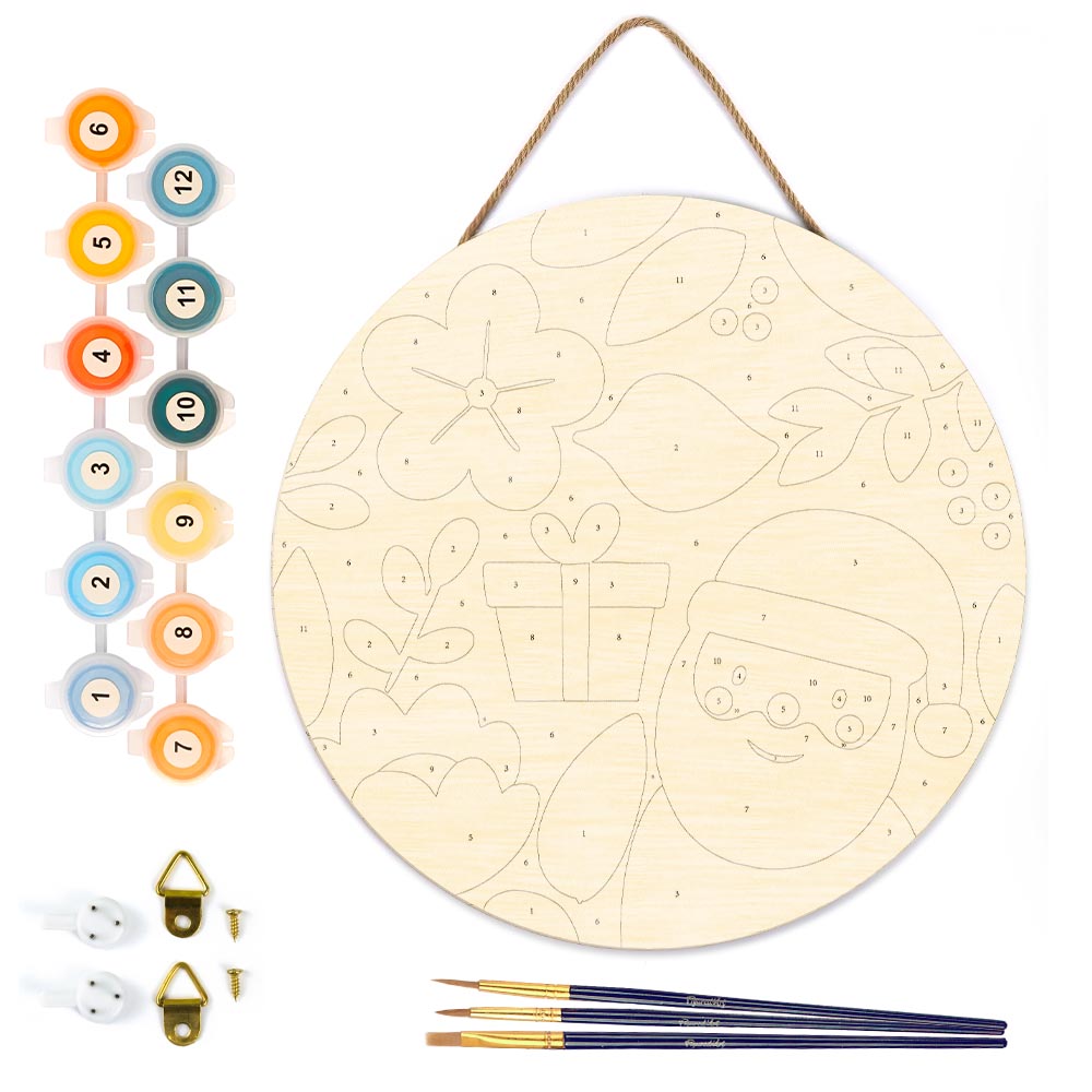 Dipingere con i Numeri su Disco di Legno - Babbo Natale e fiori
