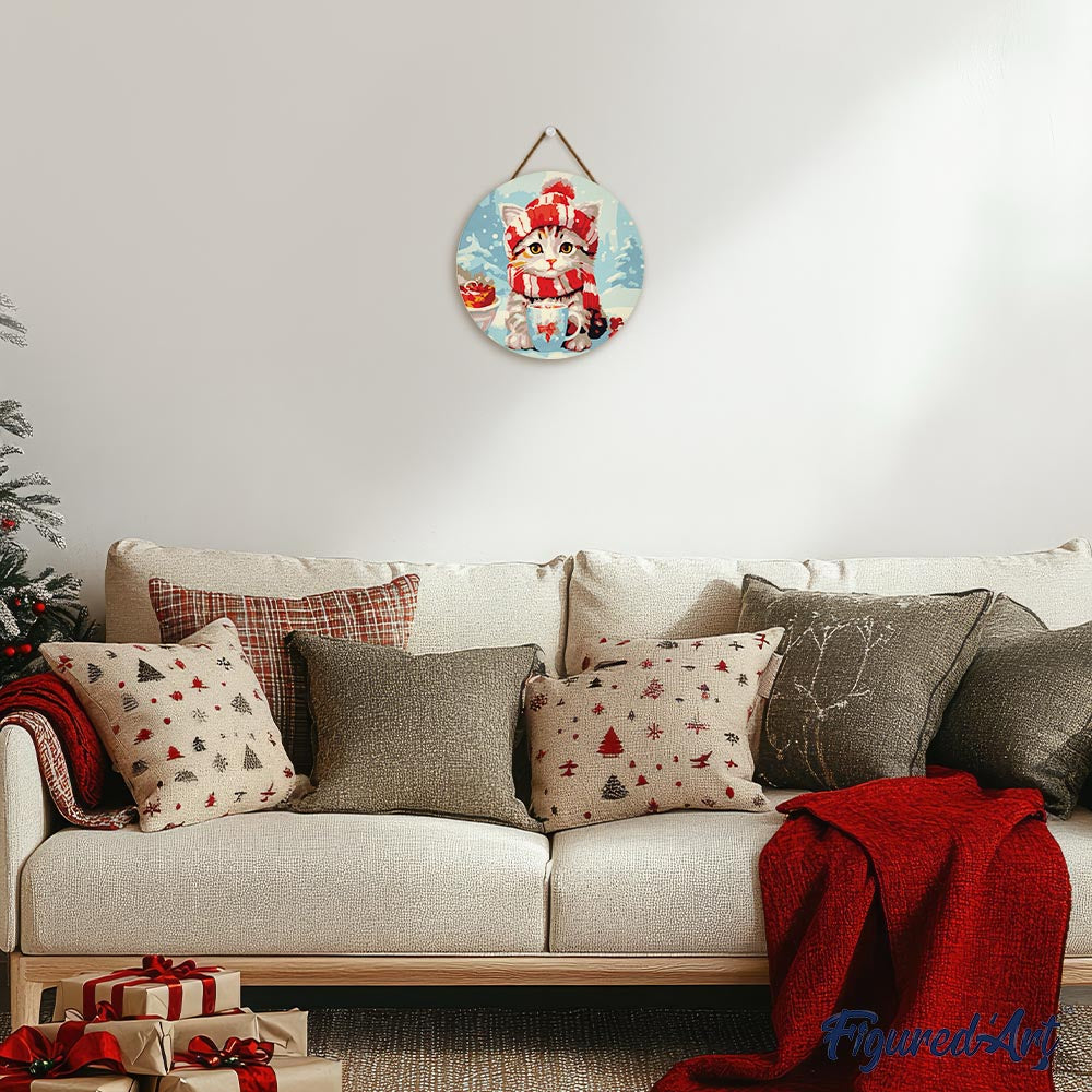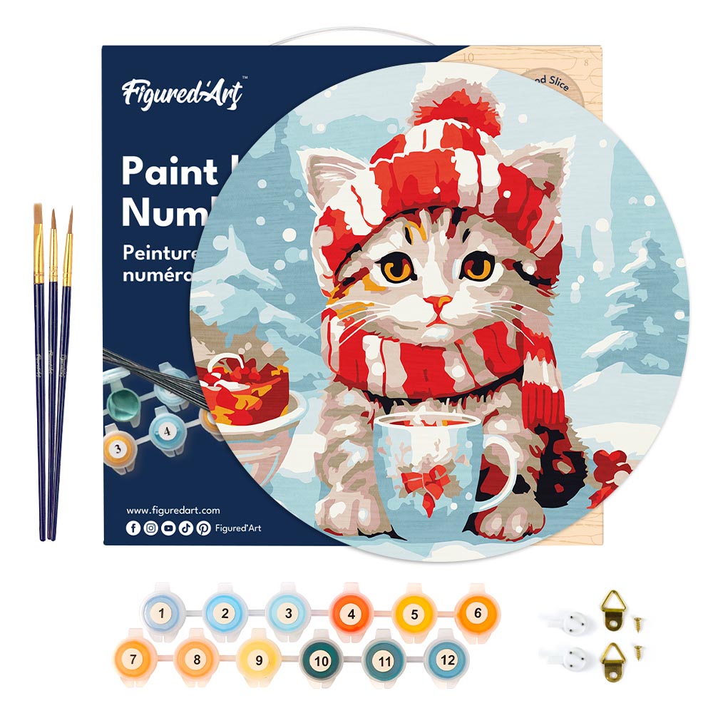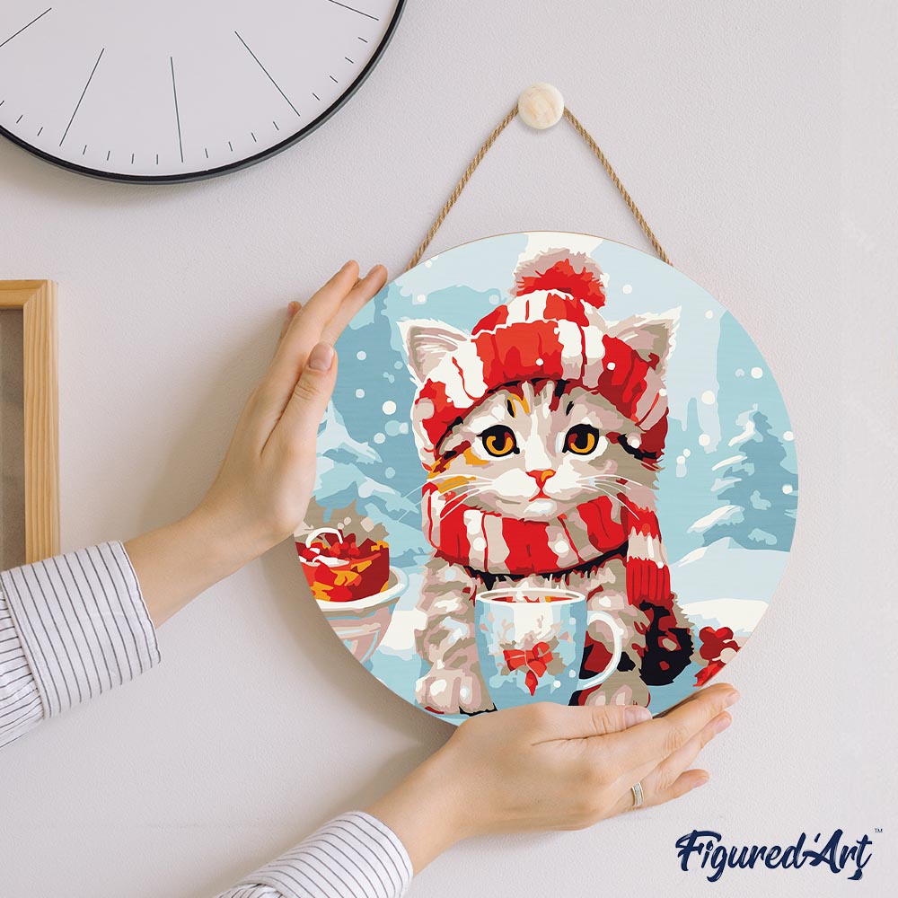 Dipingere con i Numeri su Disco di Legno - Micetto a Natale